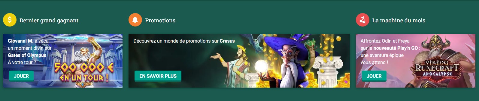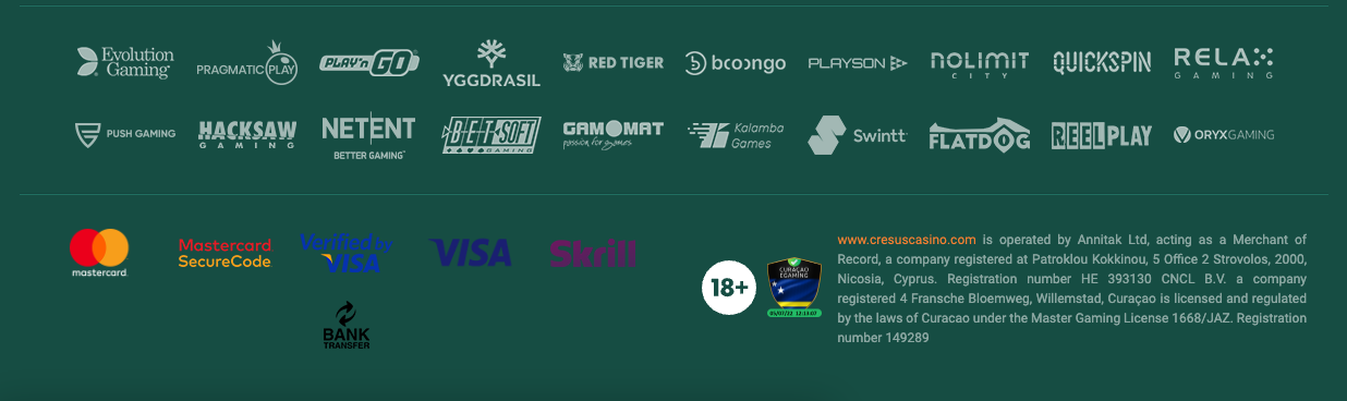 Le Cresus casino a pu se maintenir comme meilleur casino en ligne grâce à sa facilité d’utilisation et à ses nombreux bonus sans condition de mise. Mais la facilité d’inscription et de connexion au Cresus casino jouent aussi un grand rôle dans cette réputation positive. Enfin, les fournisseurs des nombreux jeux pittoresques du Cresus casino offrent des promotions qui permettent de gagner plusieurs milliers d’euros dans ce casino qui a signé une empreinte de modernité en acceptant les crypto-monnaies.